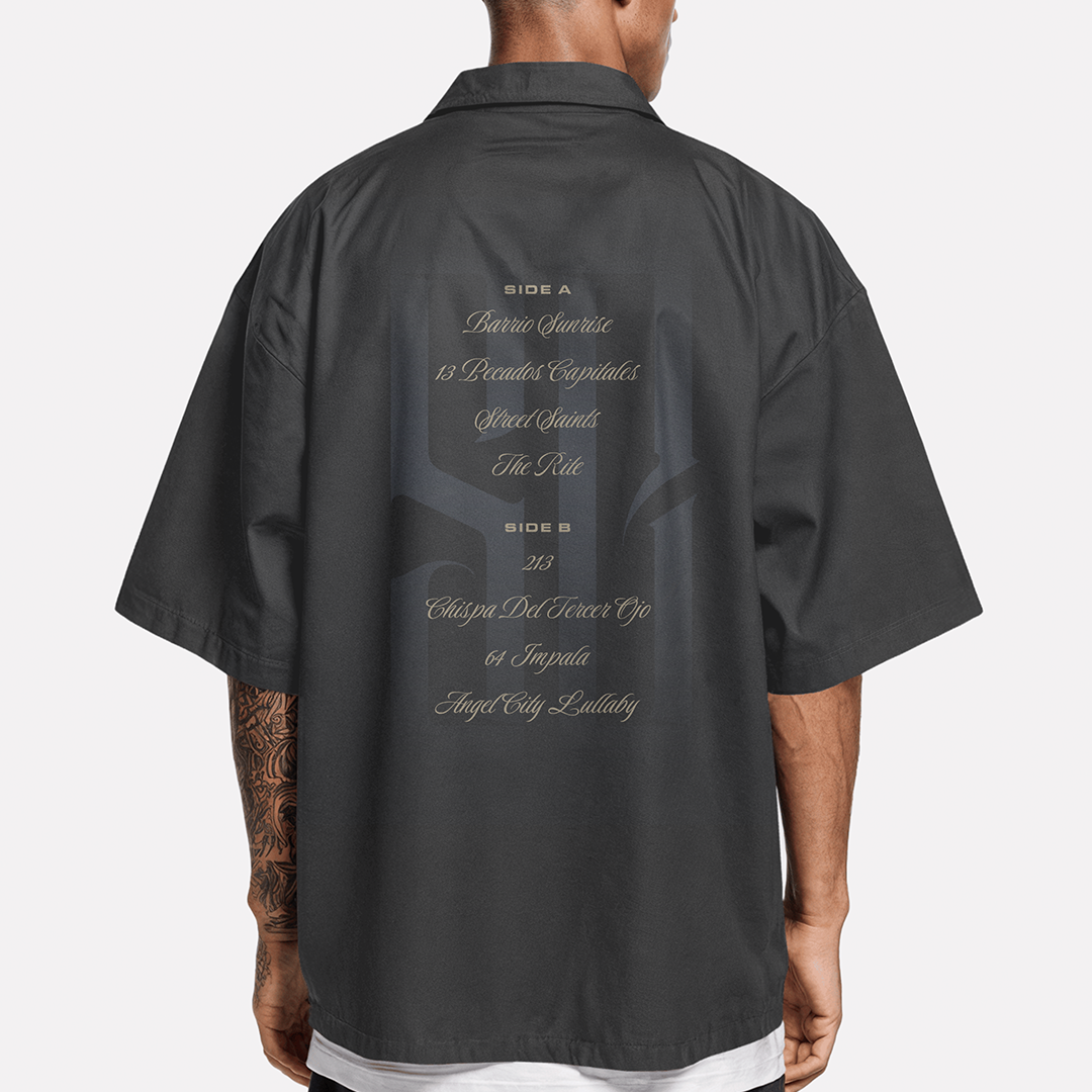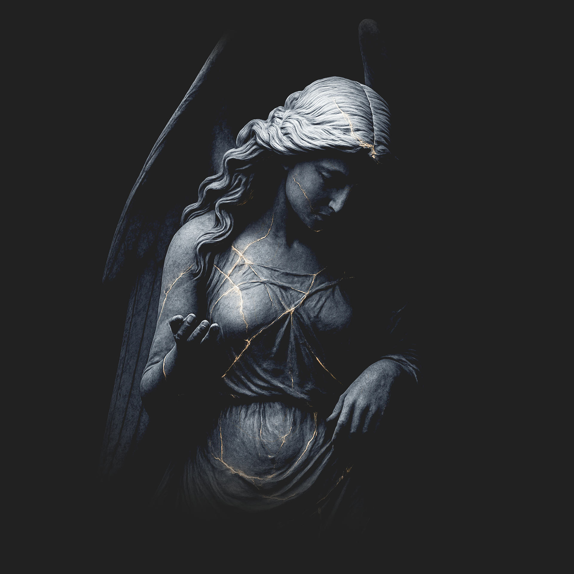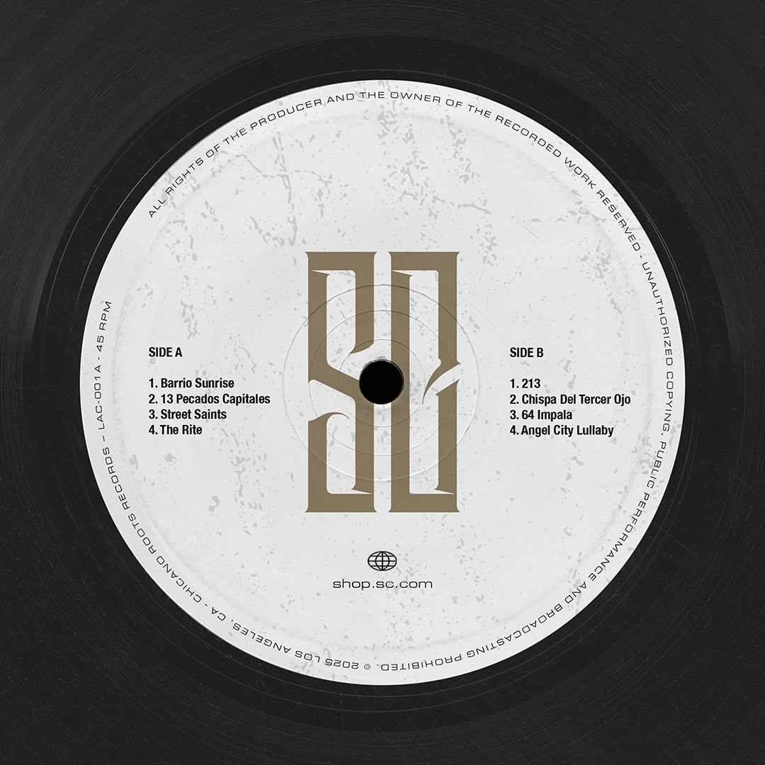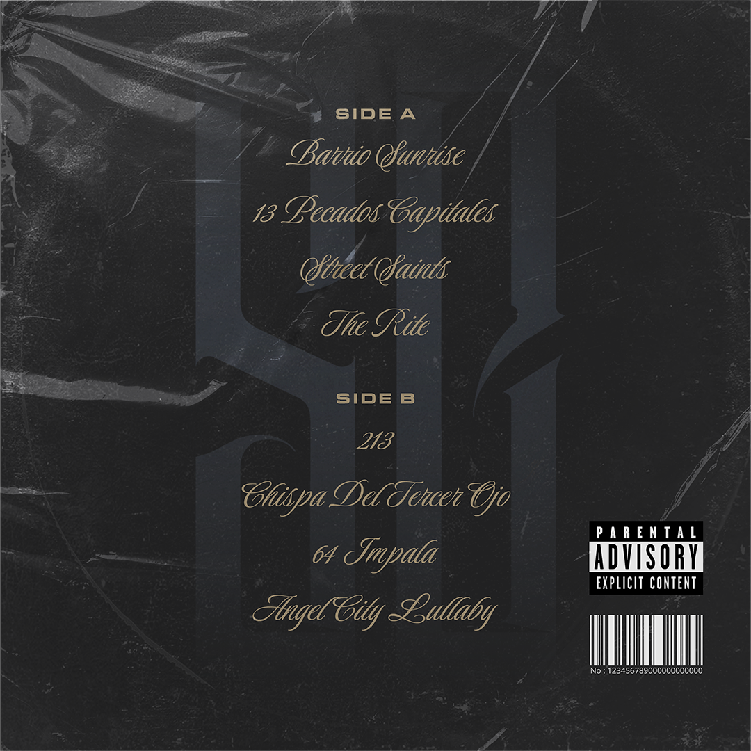 Połączyłem je z nowoczesną technologią, generując w AI postać anioła, a następnie dopracowując go ręcznie. Inspirację czerpałem z okładek Cypress Hill, krojów pisma blackletter oraz ogólnie z muzyki West Coast.